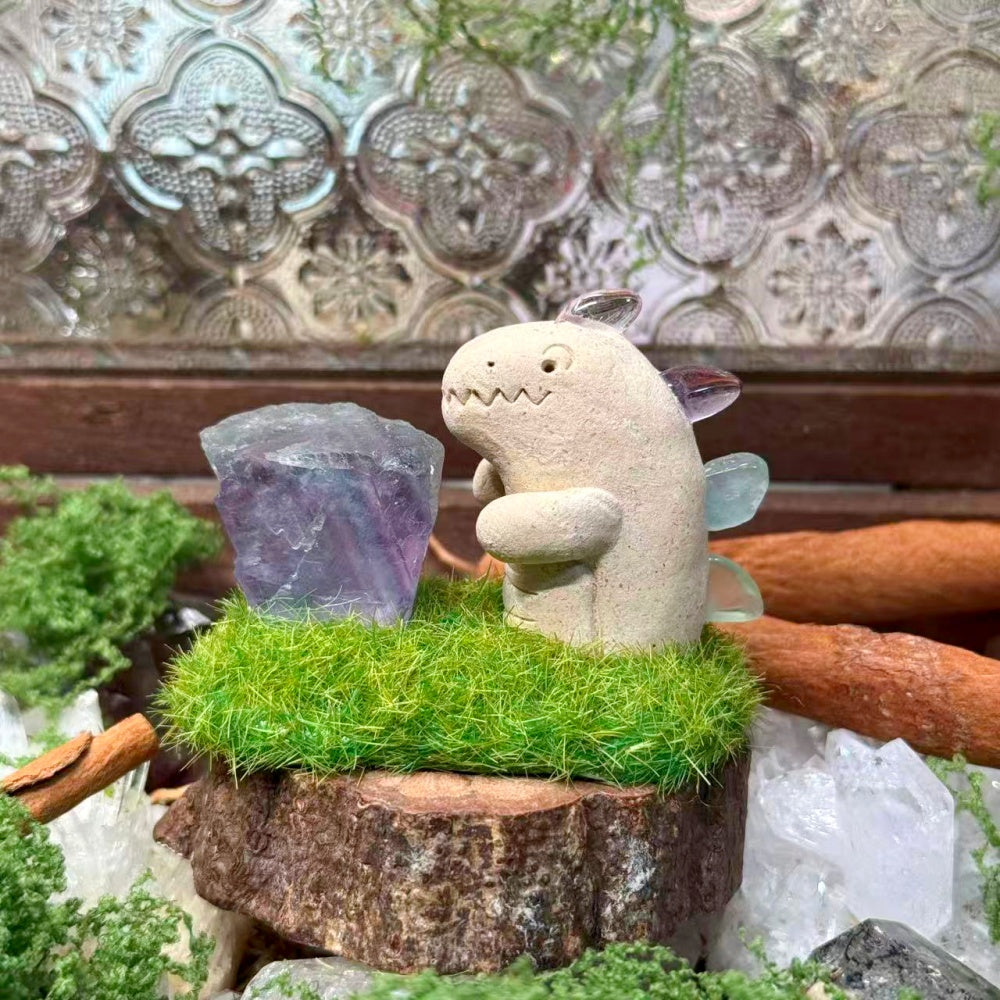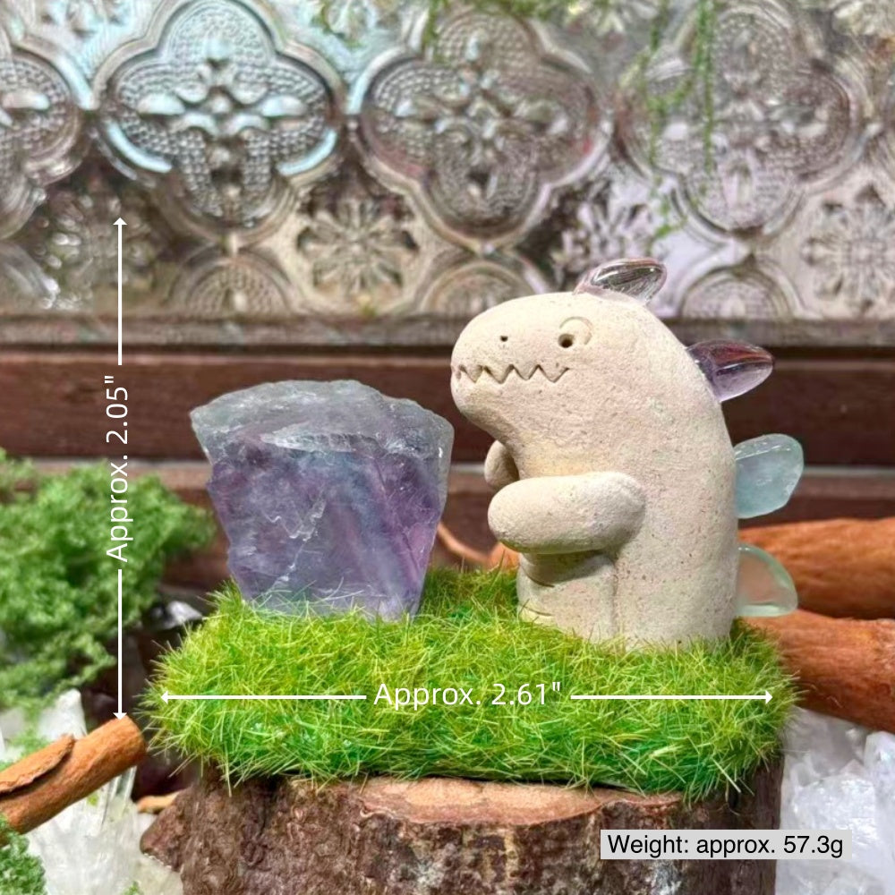 Designer Limited Edition | Little Dinosaur Embracing Colorful Energy Rainbow Fluorite Crystal Pet