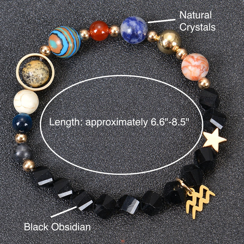 Wear the starlit energy of the universe and the protection of your zodiac on your wrist—let every planet and crystal light the path ahead of you.
