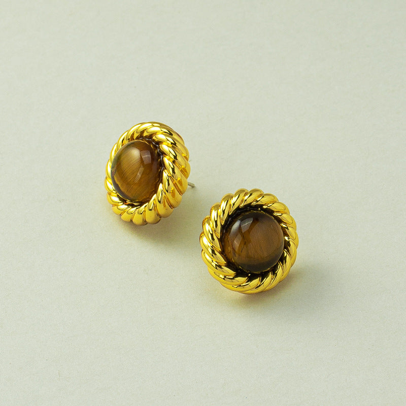 Inspired by European and American retro aesthetics, these earrings feature a spiral metal frame paired with natural tiger's eye stone, exuding a sense of strength in simplicity and showcasing a woman's elegance and determination.