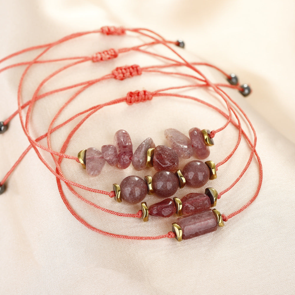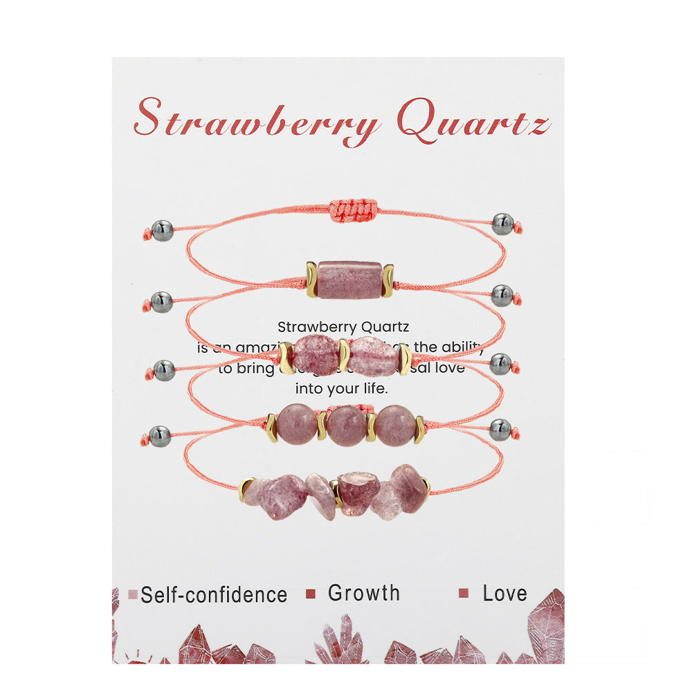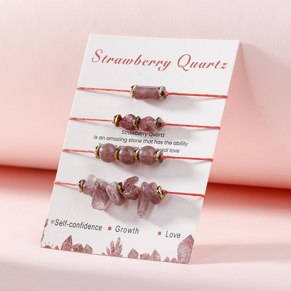 Minimalist Strawberry Quartz Energy Bracelet Set