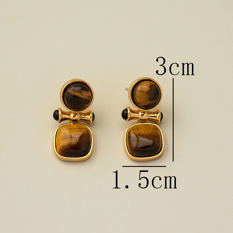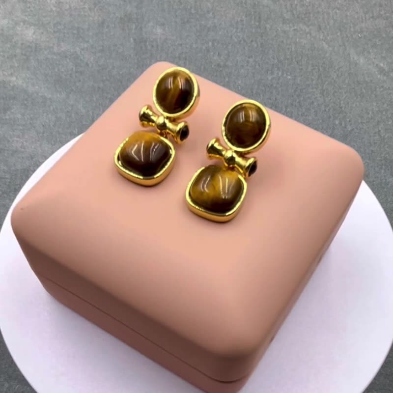 These earrings feature selected natural tiger's eye, with deep and flowing textures that emit a steady and mysterious glow. Known as the "Stone of Courage," tiger's eye enhances confidence and decisiveness, bringing clarity of judgment and determination.