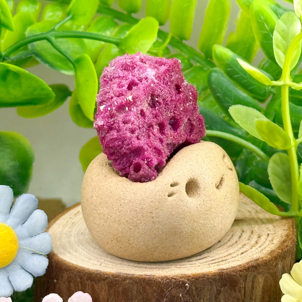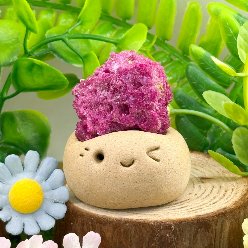 6. For daily cleaning, use a soft brush to gently remove dust, or wipe the crystal stone with a dry or slightly damp cloth. Be careful not to get the clay base or surface wet.