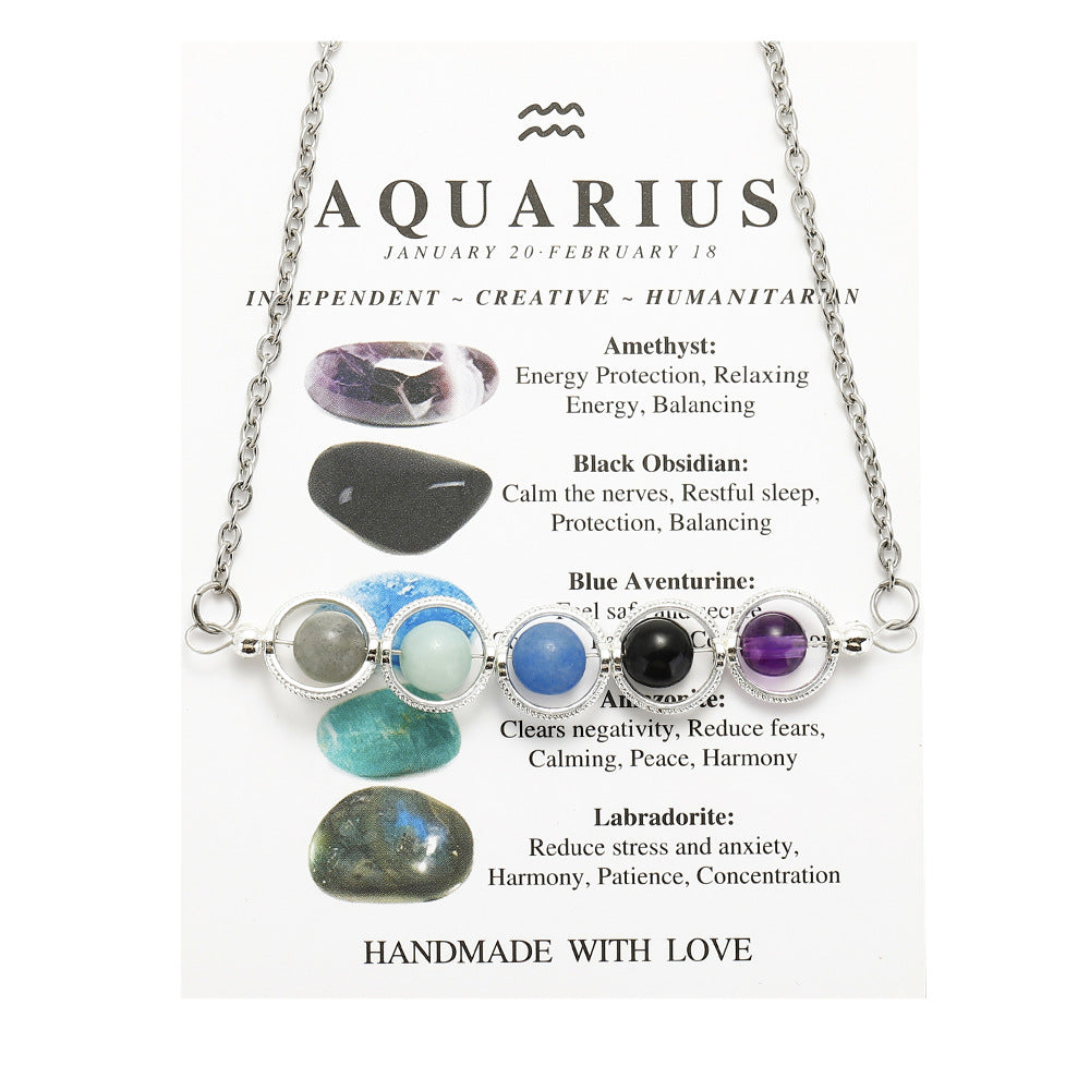 12 Zodiac | Aquarius - Sodalite & Red Jasper Peapod Bead Necklace