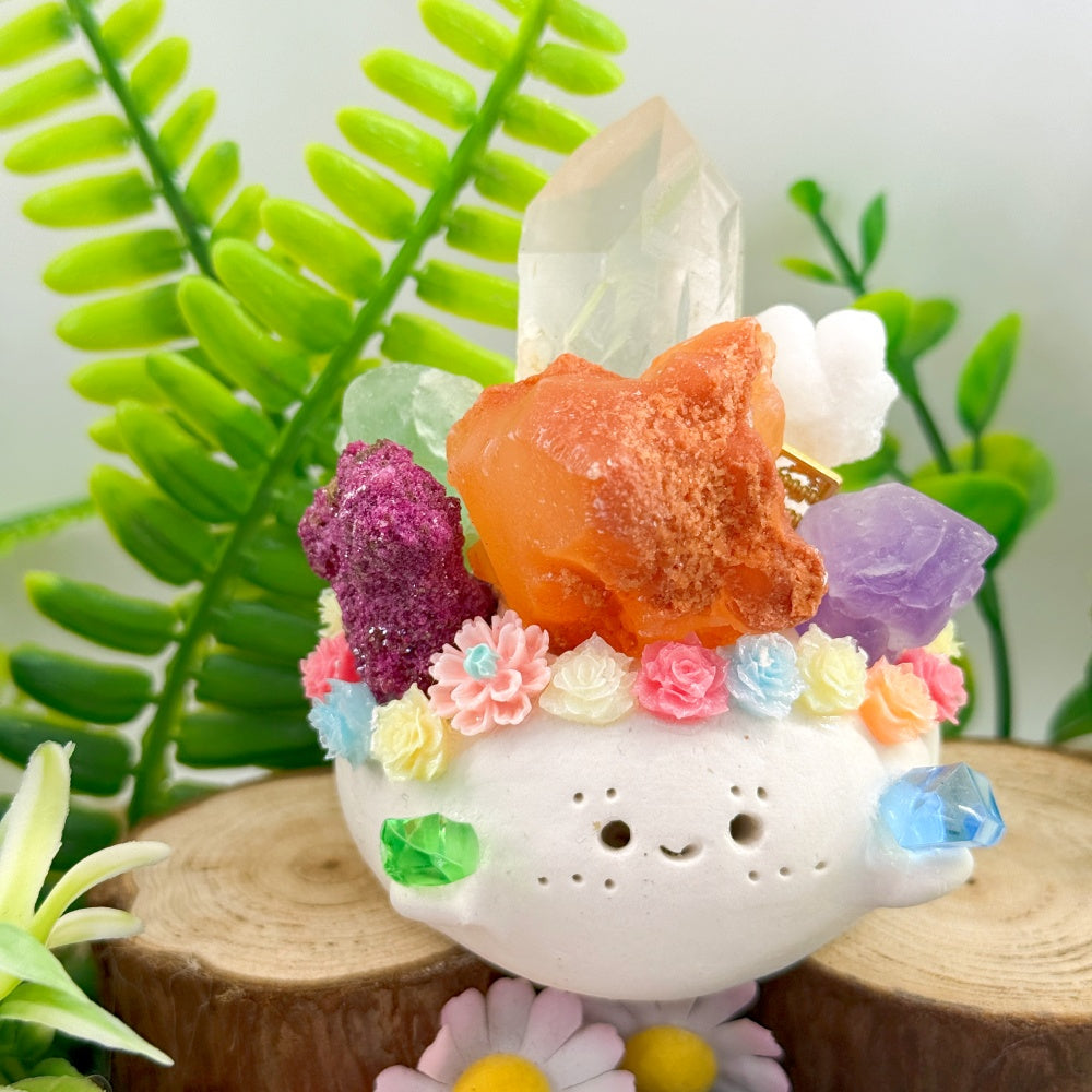6. For daily cleaning, use a soft brush to gently remove dust, or wipe the crystal stone with a dry or slightly damp cloth. Be careful not to get the clay base or surface wet.