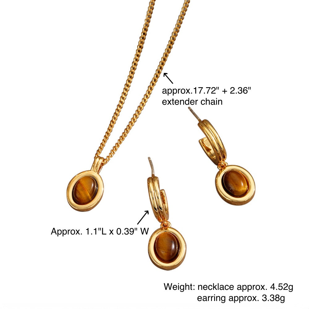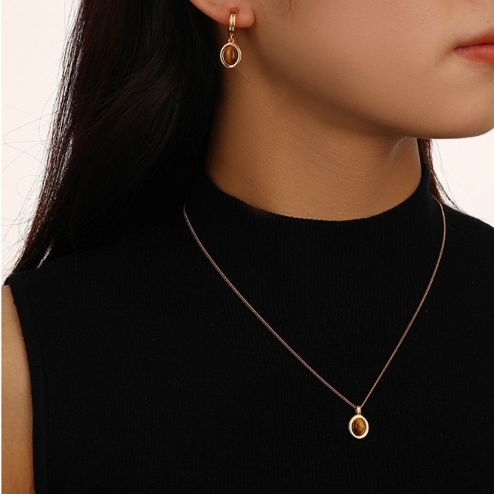 Earth-Tone Tiger's Eye Necklace & Earring Vintage Simplicity with Natural Energy