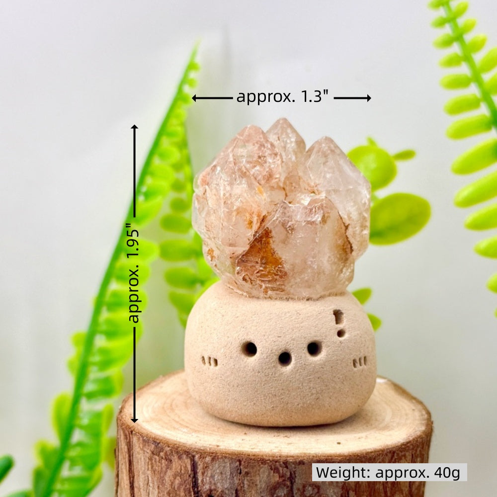 3. You may gently apply a small amount of essential oil to the crystal, but please avoid getting any oil on the clay surface or base. Do not soak or completely cover the crystal in oil.