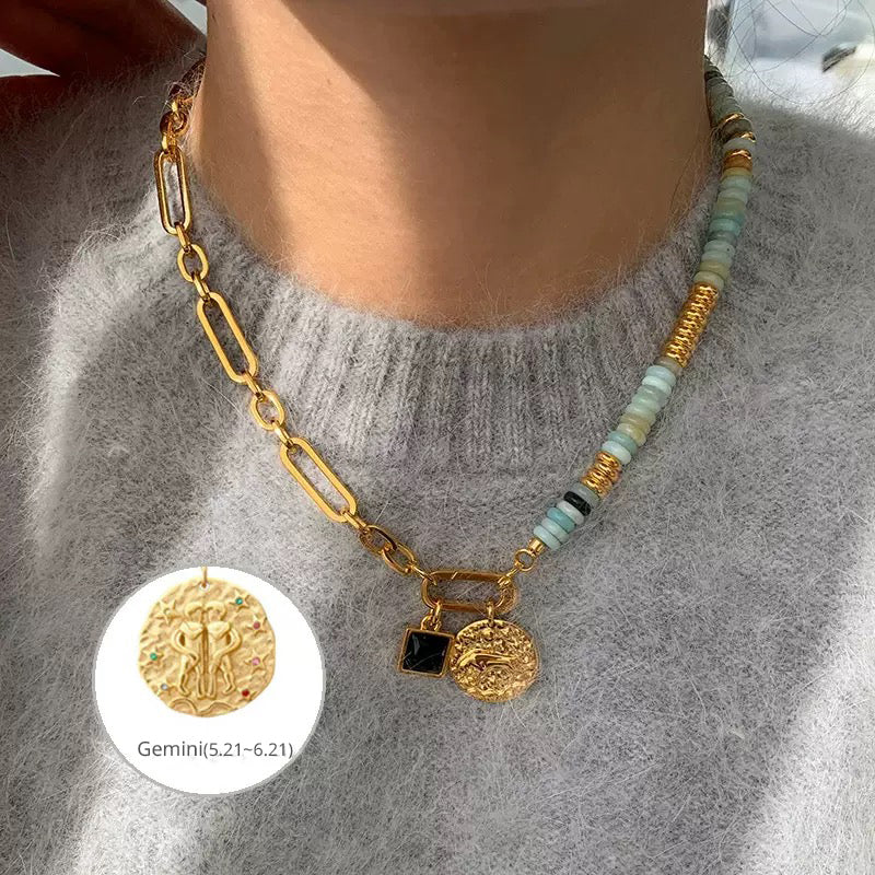 12 Zodiac Natural Stone Asymmetrical Design Luxe Necklace