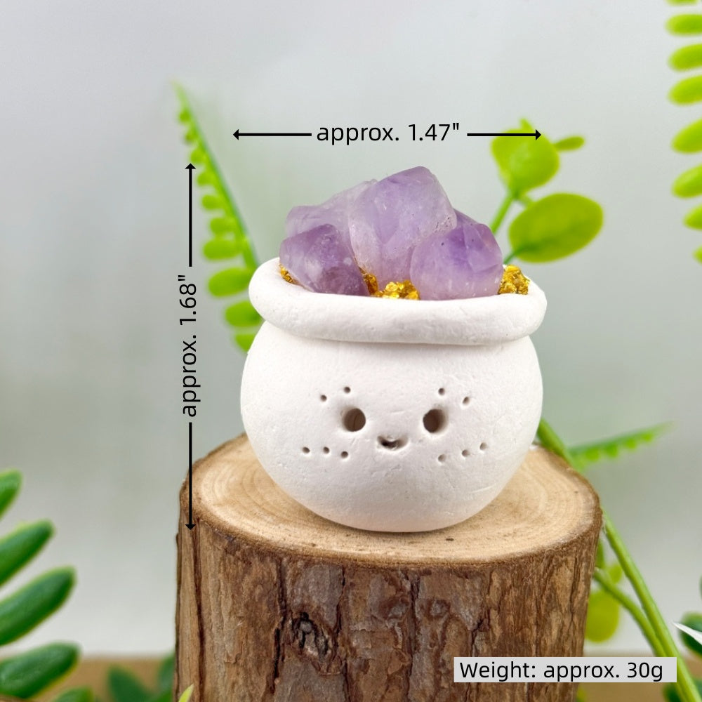 6. For daily cleaning, use a soft brush to gently remove dust, or wipe the crystal stone with a dry or slightly damp cloth. Be careful not to get the clay base or surface wet.