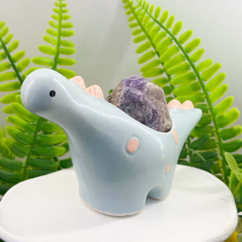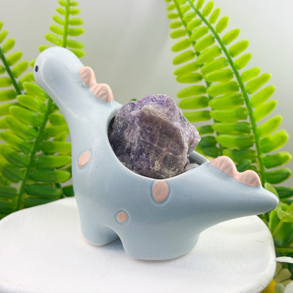 Clear Quartz Elephant & Amethyst Dinosaur Healing Figurines