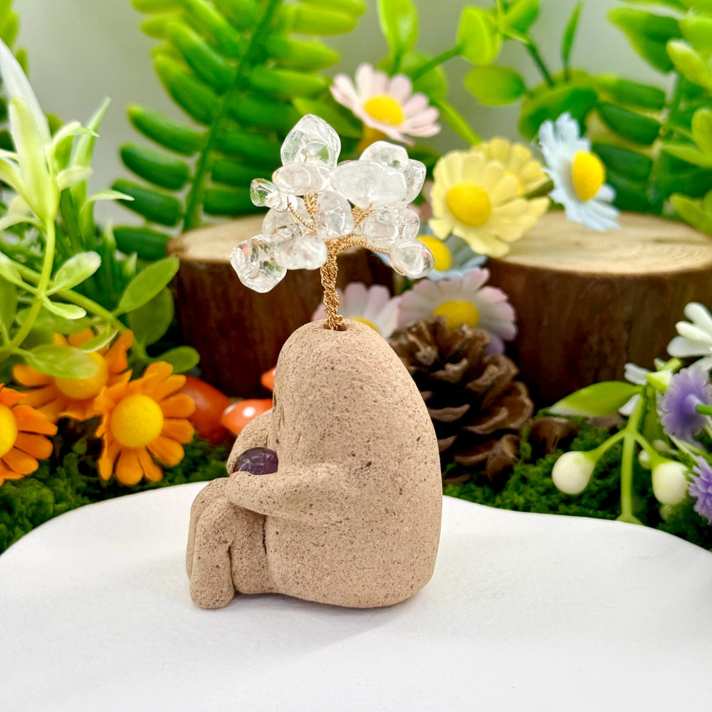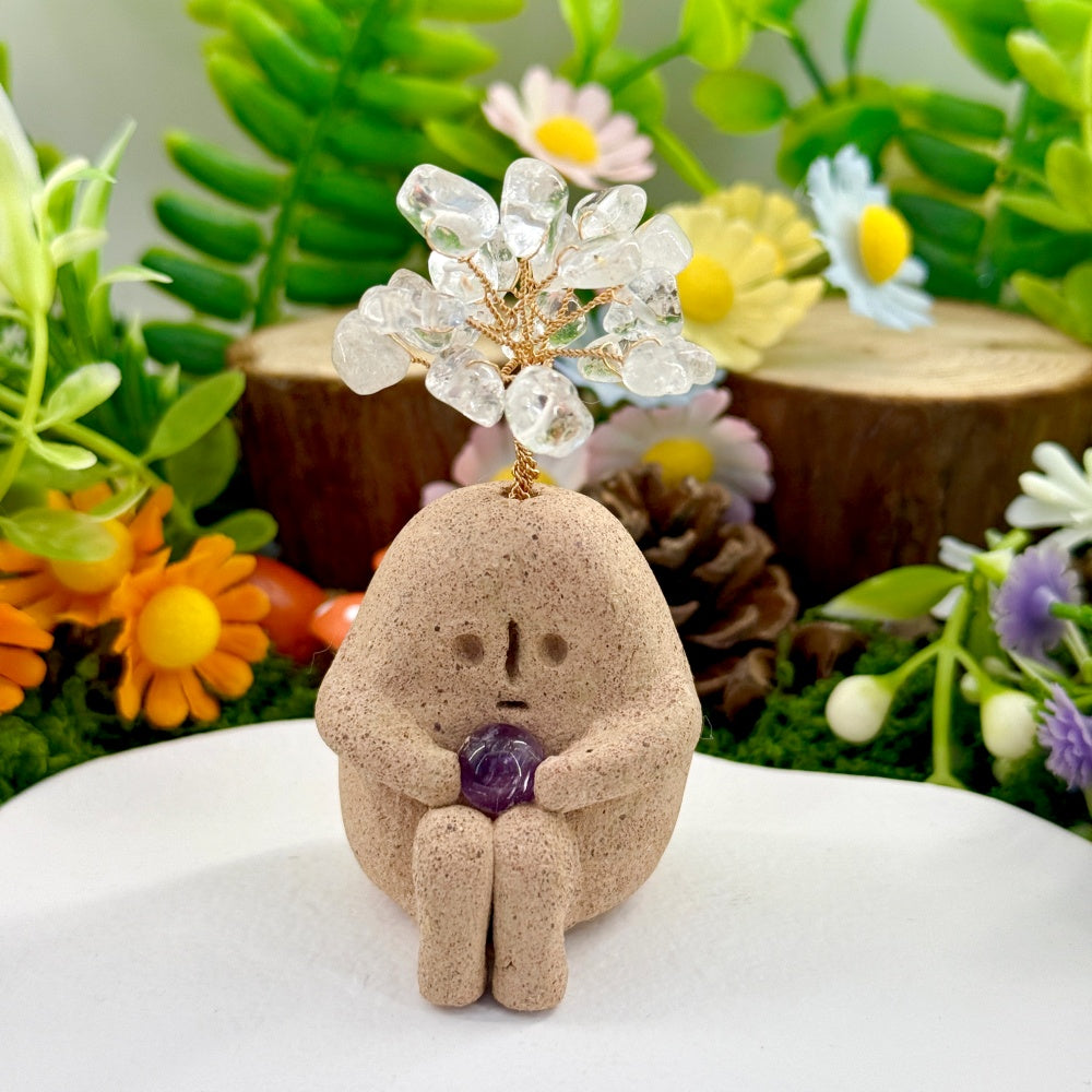 6. For daily cleaning, use a soft brush to gently remove dust, or wipe the crystal stone with a dry or slightly damp cloth. Be careful not to get the clay base or surface wet.