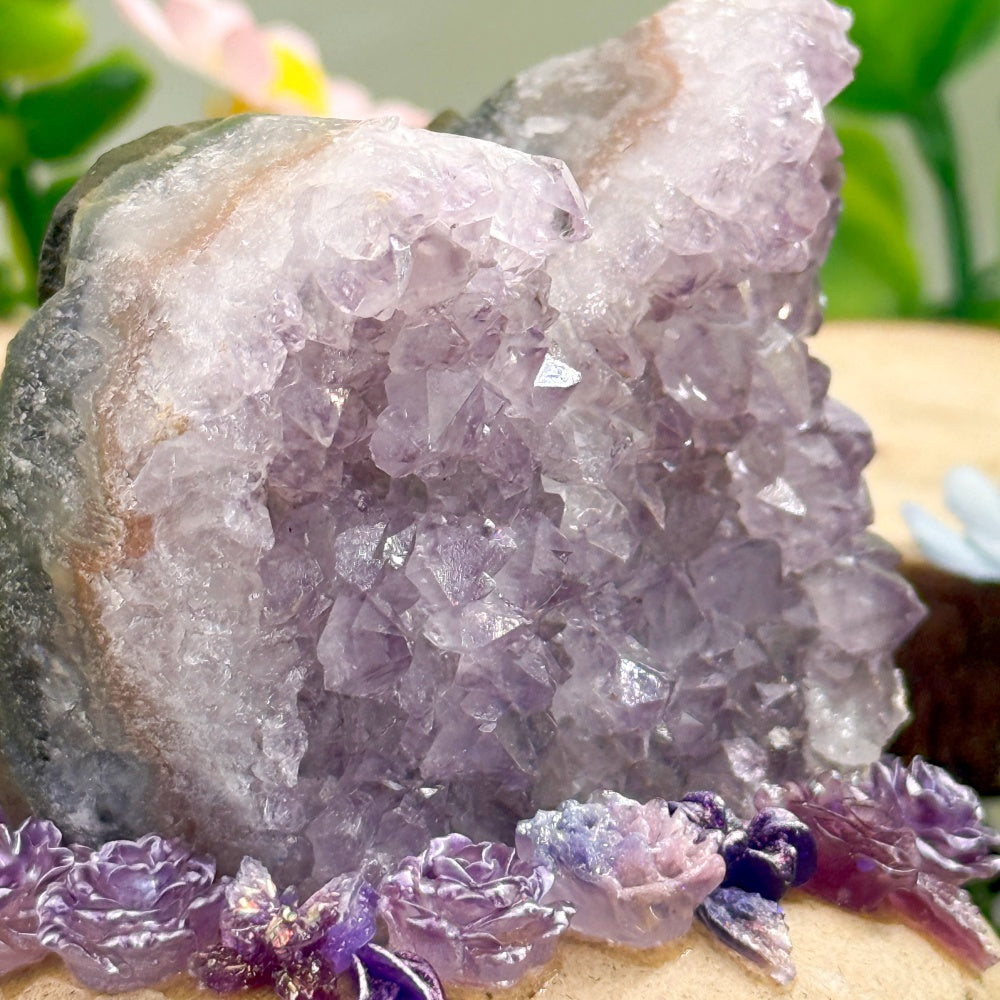 Amethyst symbolizes calm, intuition, and emotional healing, helping to ease anxiety, release stress, and offer gentle support during moments of low mood or mental overwhelm.