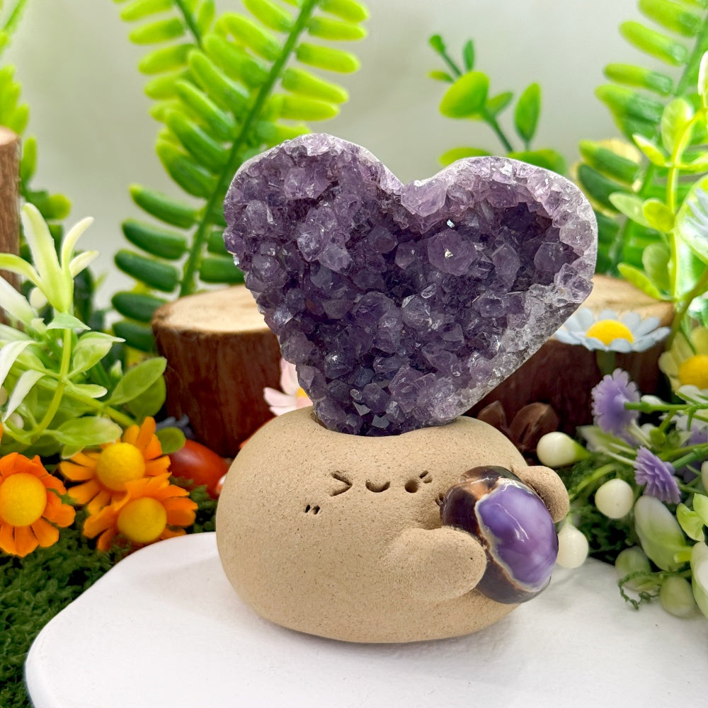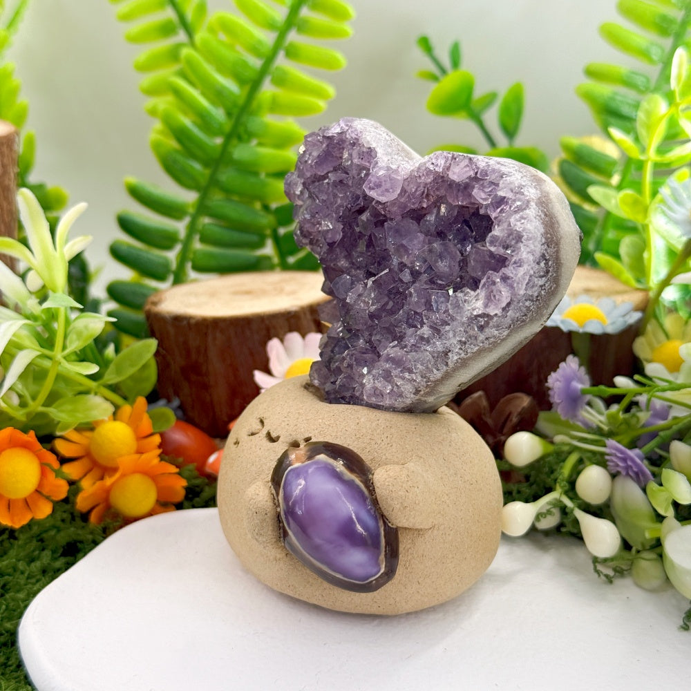 6. For daily cleaning, use a soft brush to gently remove dust, or wipe the crystal stone with a dry or slightly damp cloth. Be careful not to get the clay base or surface wet.