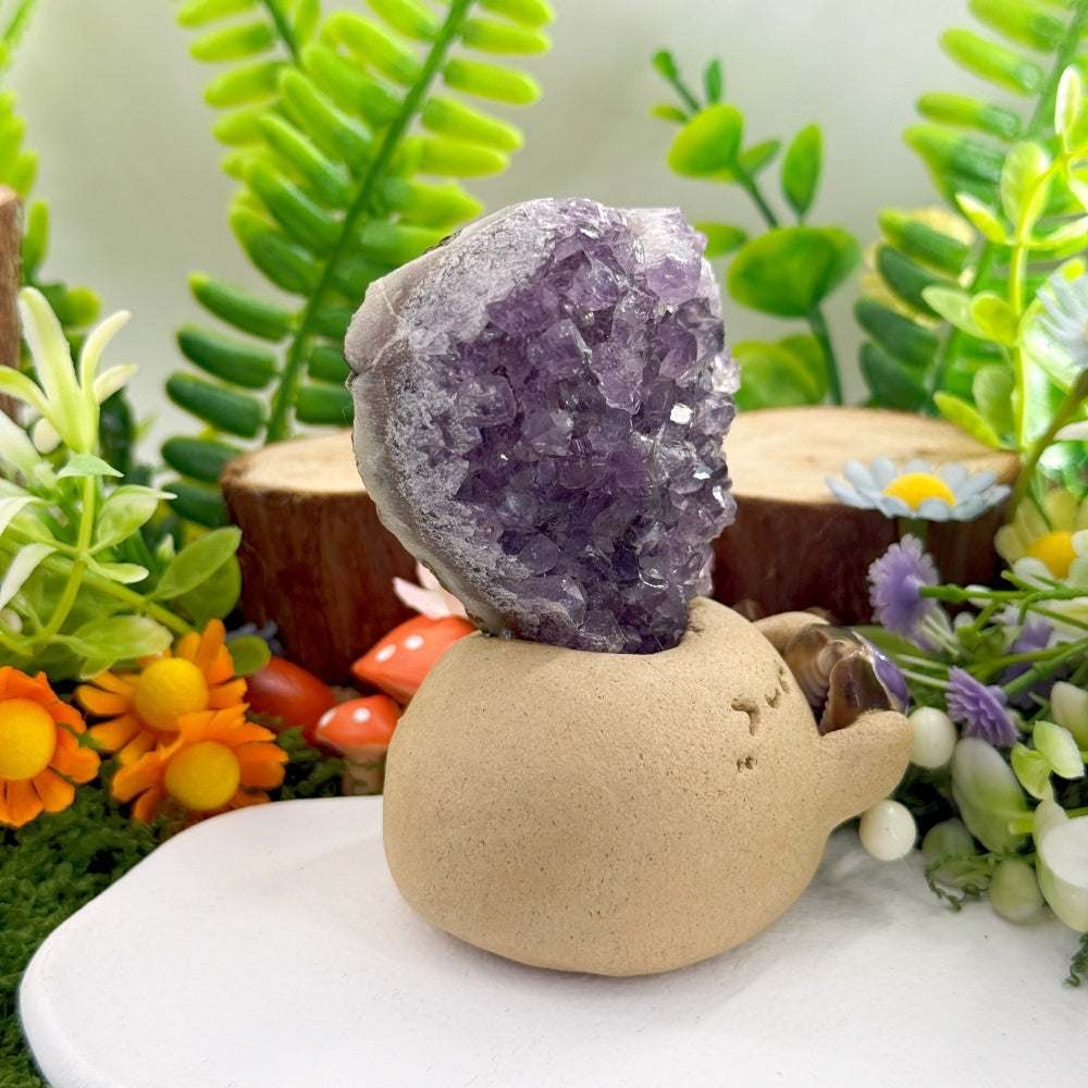 3. You may gently apply a small amount of essential oil to the crystal, but please avoid getting any oil on the clay surface or base. Do not soak or completely cover the crystal in oil.