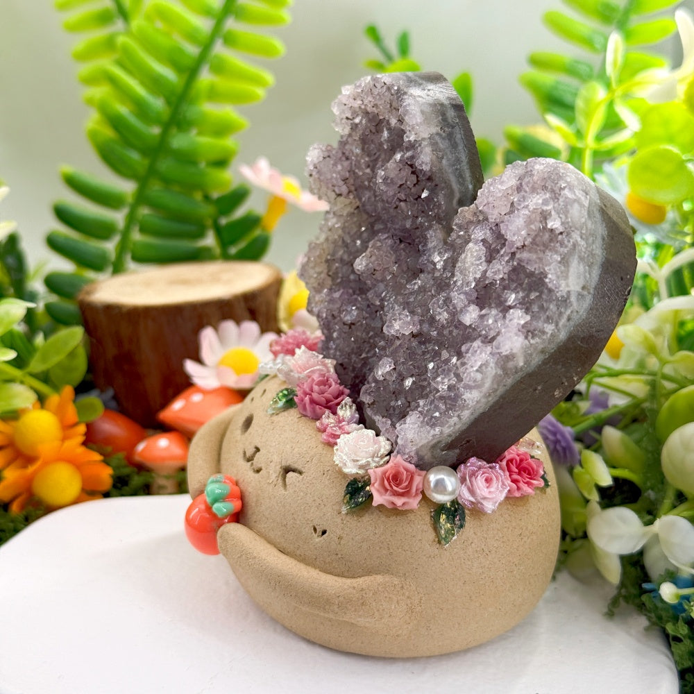 Heart Bunny Amethyst Crystal Pet for Emotional Soothing