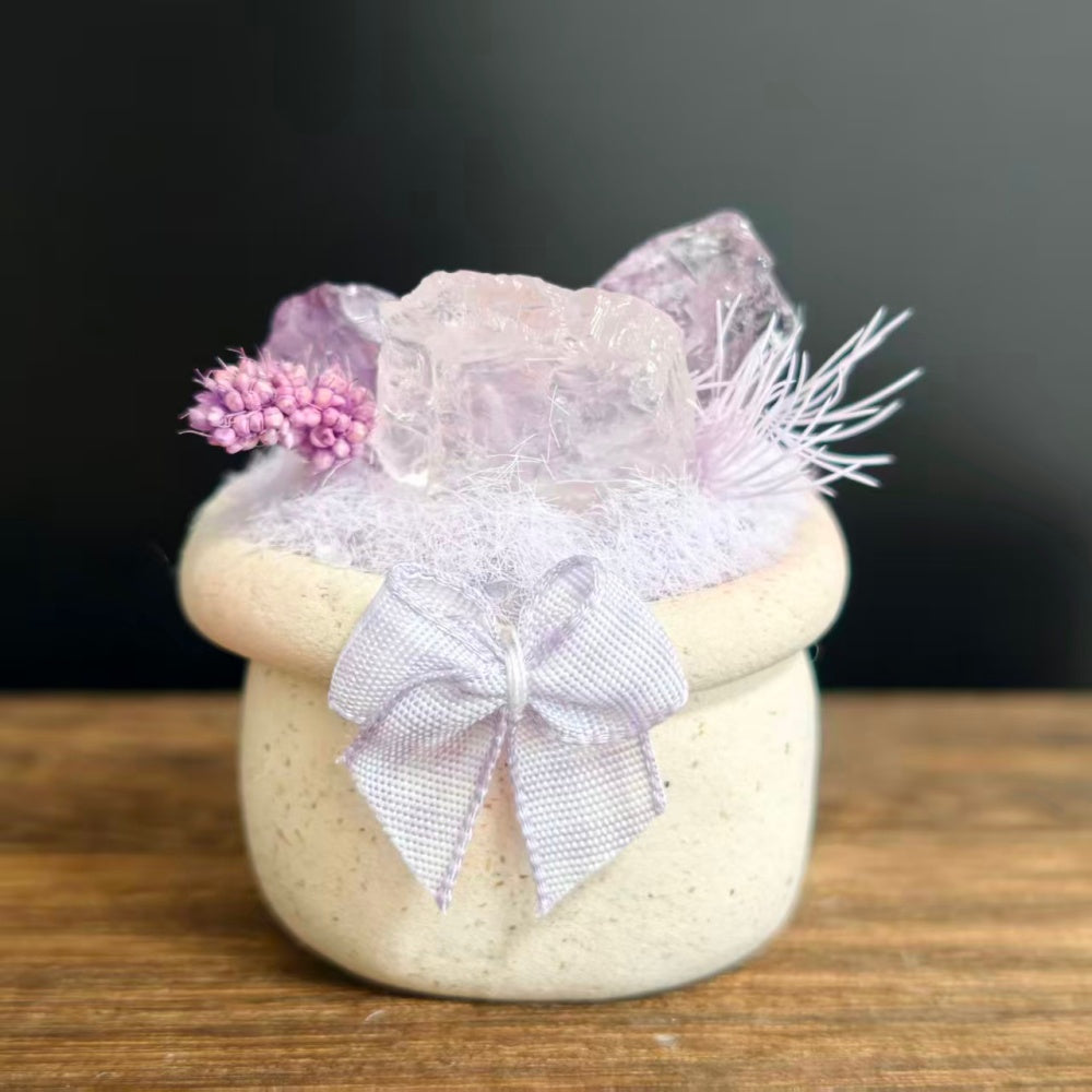 3. You may gently apply a small amount of essential oil to the crystal, but please avoid getting any oil on the clay surface or base. Do not soak or completely cover the crystal in oil.