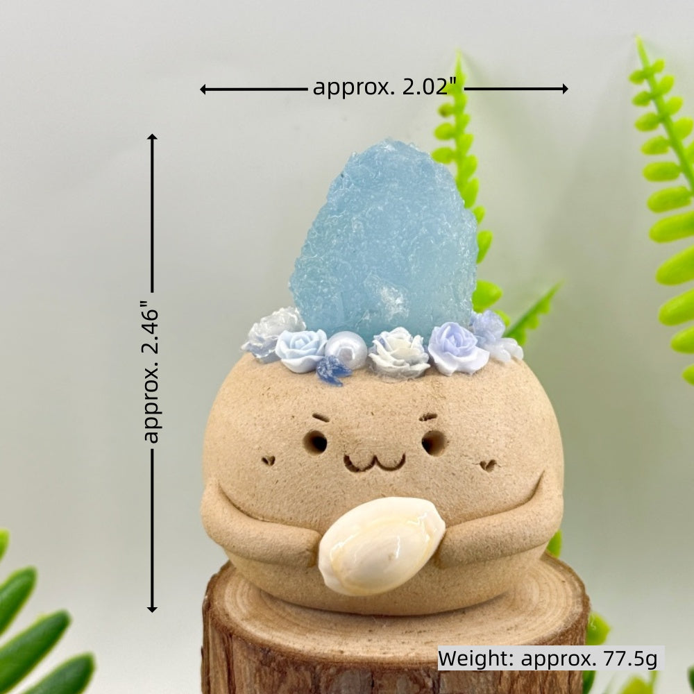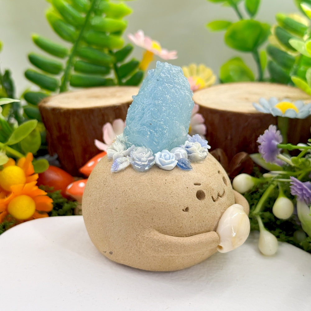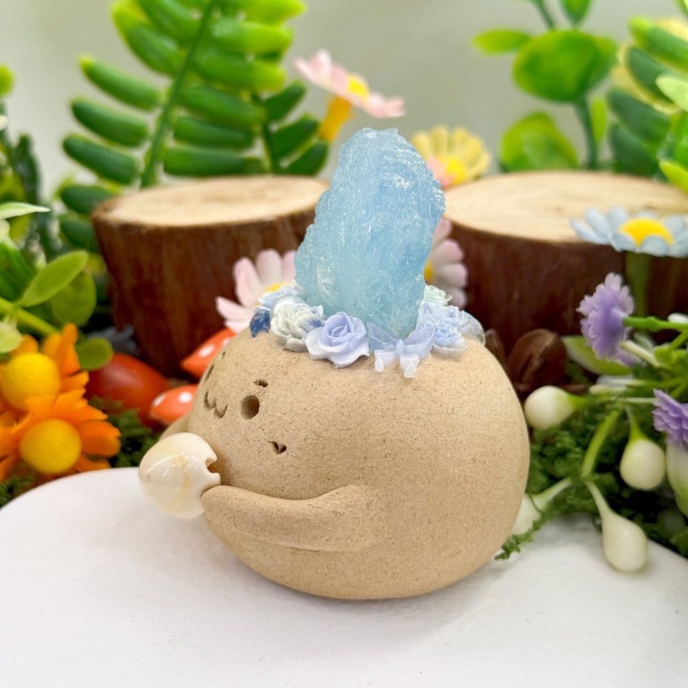 6. For daily cleaning, use a soft brush to gently remove dust, or wipe the crystal stone with a dry or slightly damp cloth. Be careful not to get the clay base or surface wet.