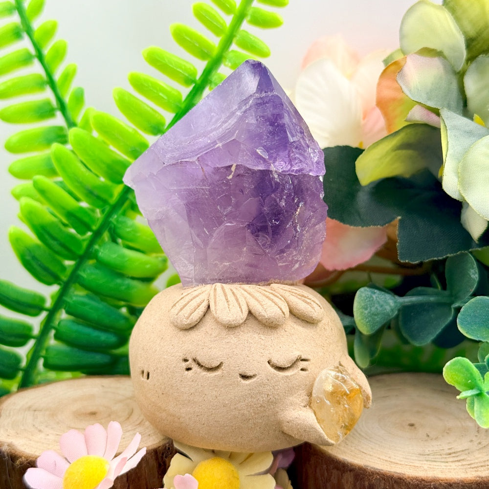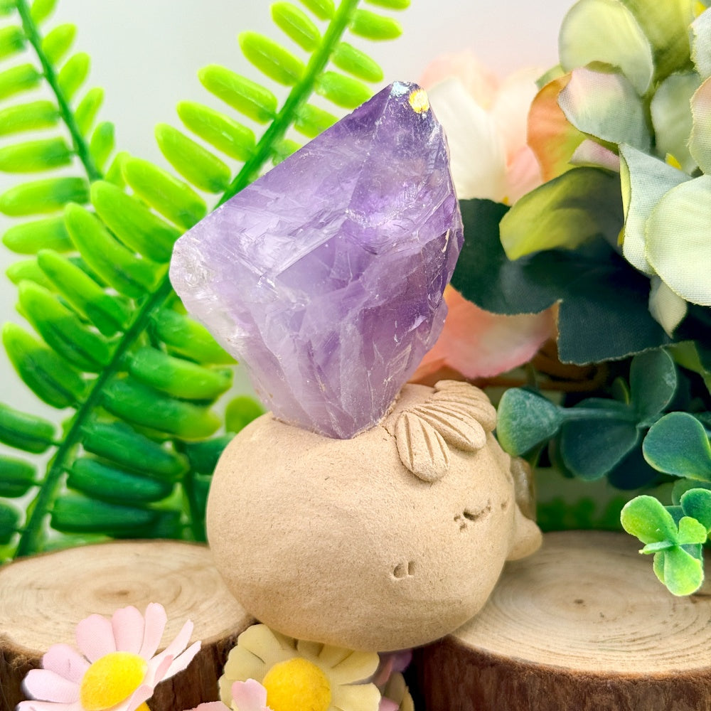 3. You may gently apply a small amount of essential oil to the crystal, but please avoid getting any oil on the clay surface or base. Do not soak or completely cover the crystal in oil.