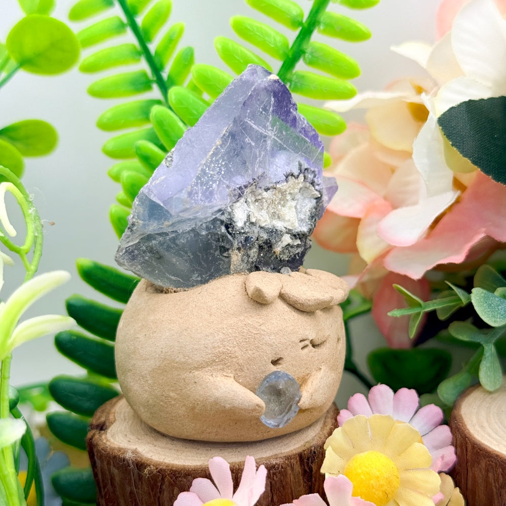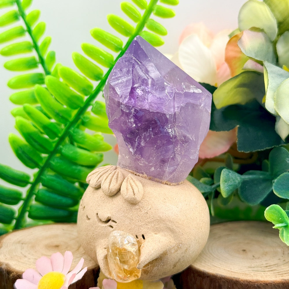6. For daily cleaning, use a soft brush to gently remove dust, or wipe the crystal stone with a dry or slightly damp cloth. Be careful not to get the clay base or surface wet.