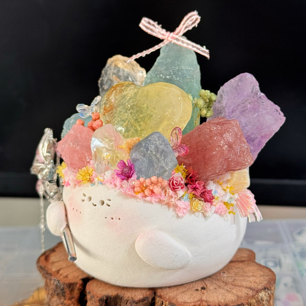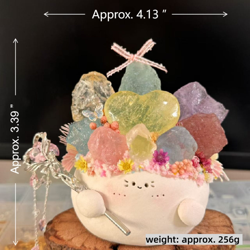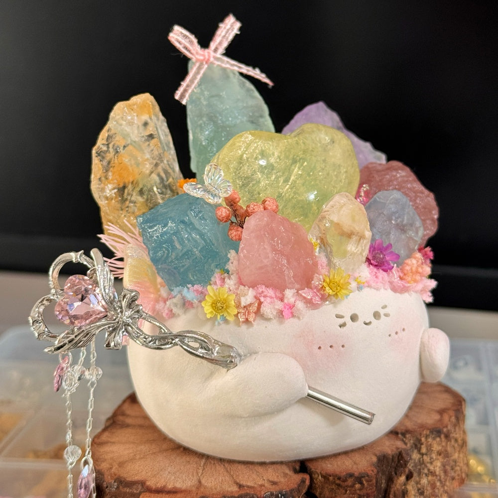6. For daily cleaning, use a soft brush to gently remove dust, or wipe the crystal stone with a dry or slightly damp cloth. Be careful not to get the clay base or surface wet.