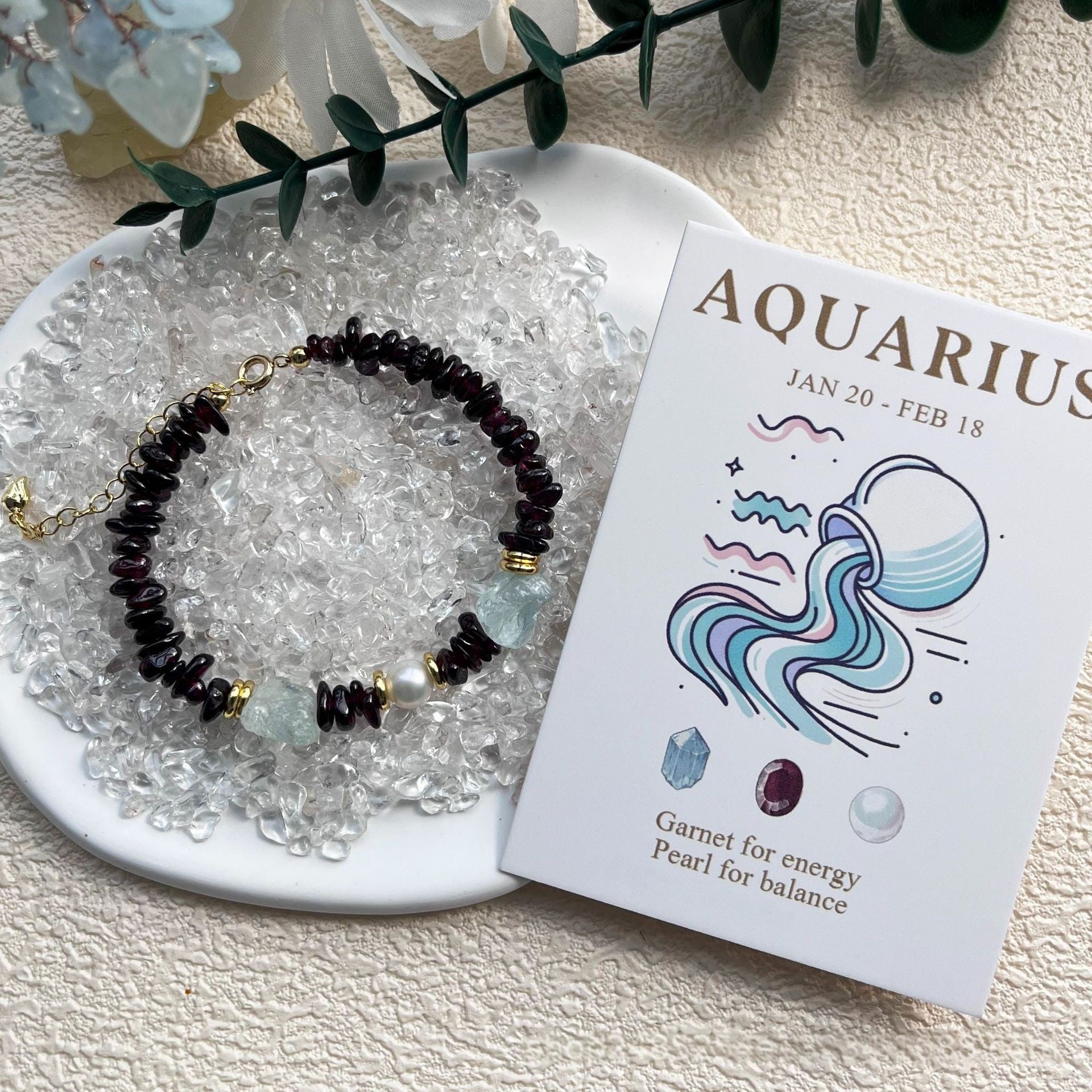 Natural Crystal & Pearl Beaded Handmade Zodiac Bracelet