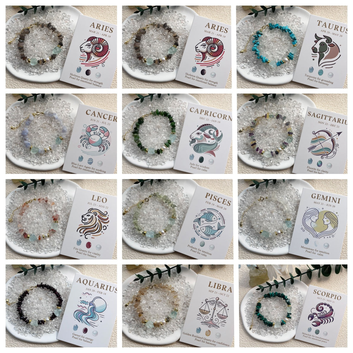 Natural Crystal & Pearl Beaded Handmade Zodiac Bracelet