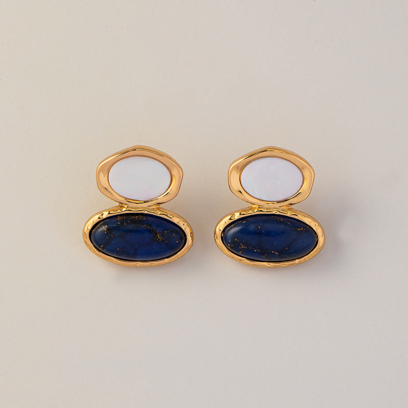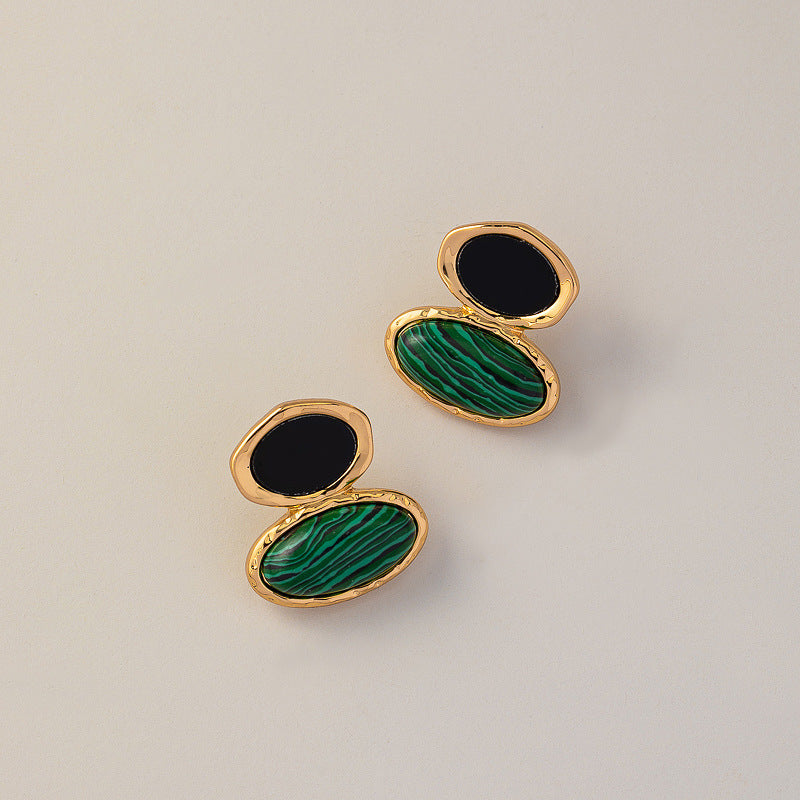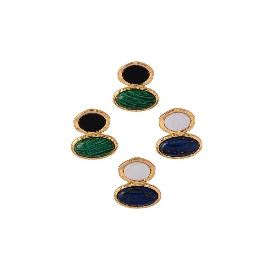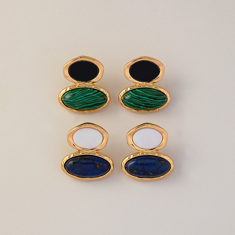 Vintage Minimalist Irregular Malachite and Lapis Lazuli Ear Studs
