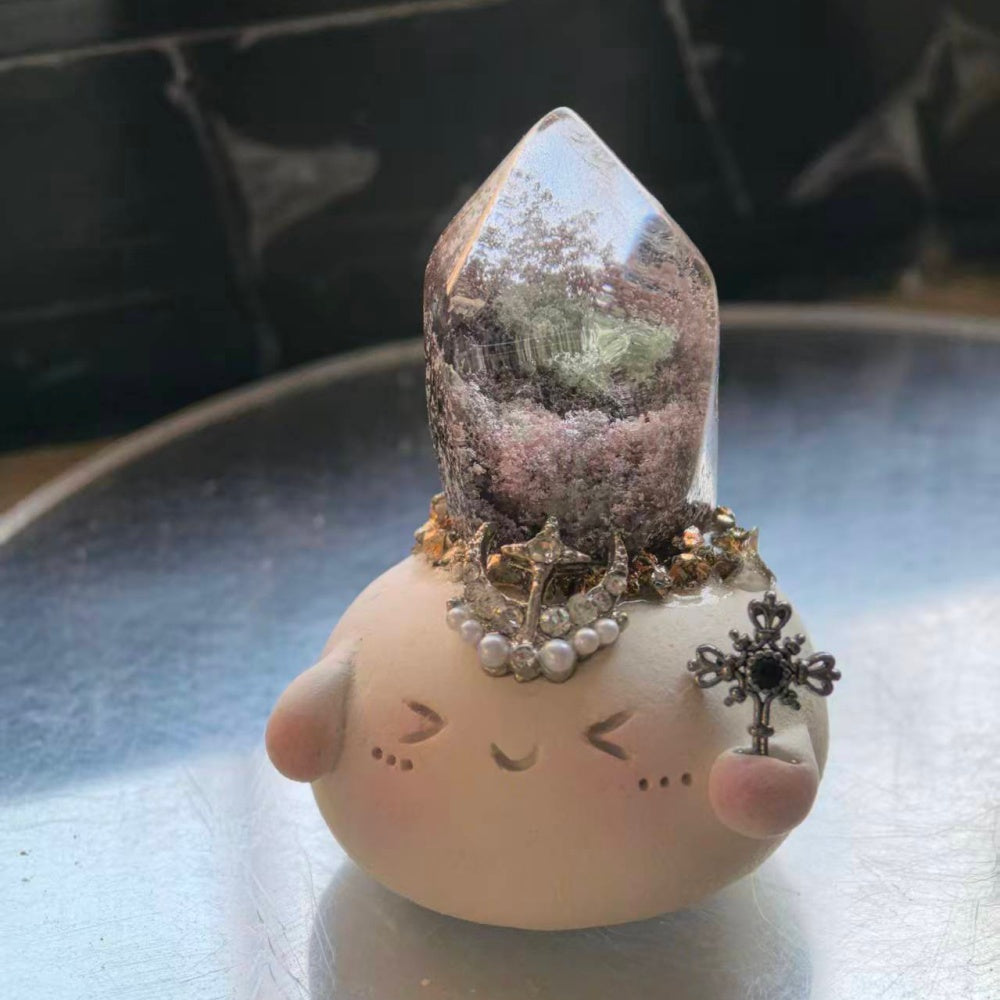 6. For daily cleaning, use a soft brush to gently remove dust, or wipe the crystal stone with a dry or slightly damp cloth. Be careful not to get the clay base or surface wet.