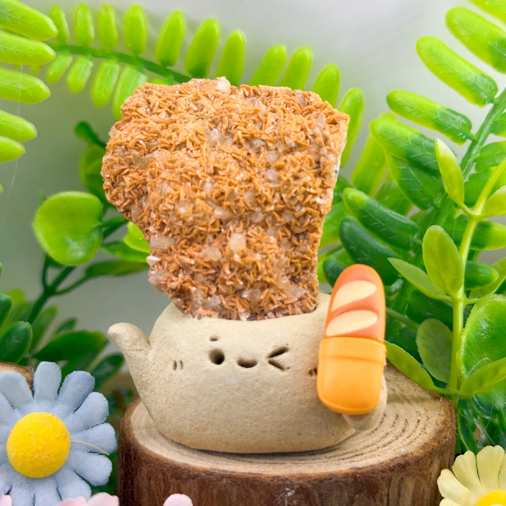 6. For daily cleaning, use a soft brush to gently remove dust, or wipe the crystal stone with a dry or slightly damp cloth. Be careful not to get the clay base or surface wet.
