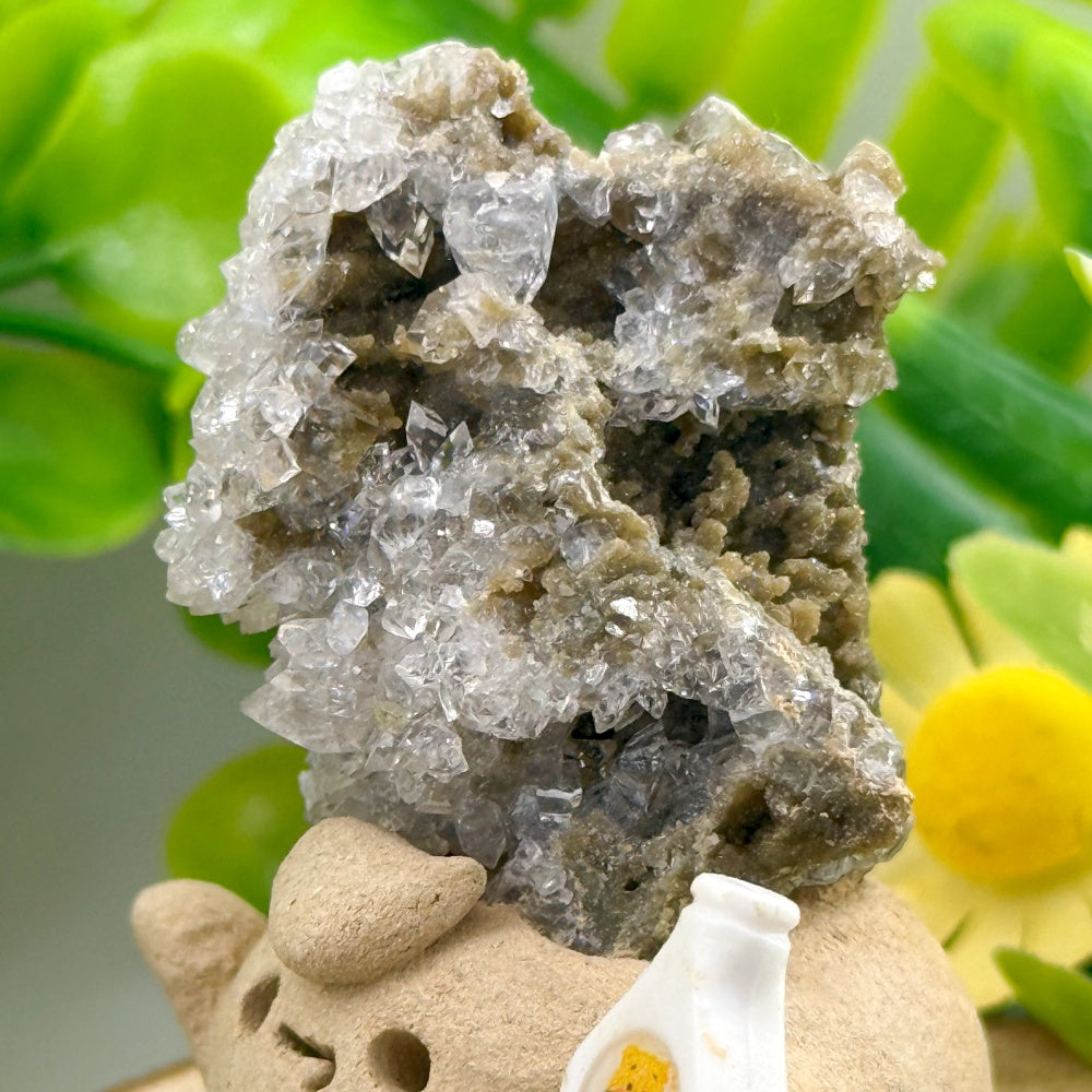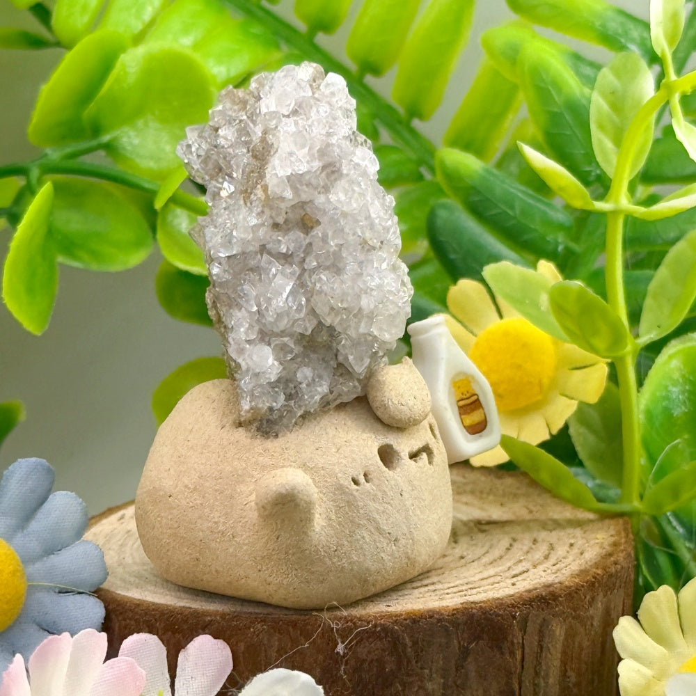 6. For daily cleaning, use a soft brush to gently remove dust, or wipe the crystal stone with a dry or slightly damp cloth. Be careful not to get the clay base or surface wet.