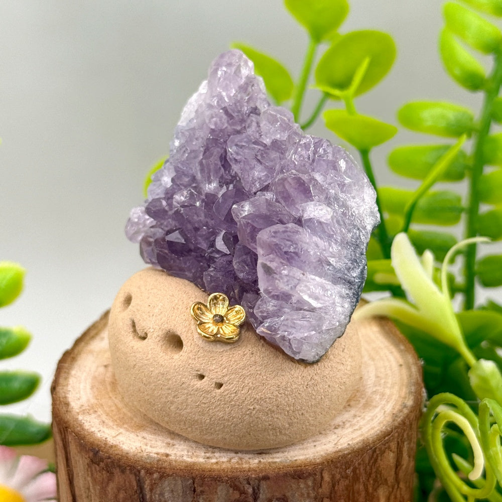 3. You may gently apply a small amount of essential oil to the crystal, but please avoid getting any oil on the clay surface or base. Do not soak or completely cover the crystal in oil.