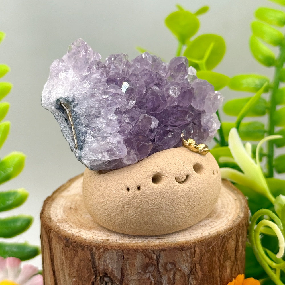 6. For daily cleaning, use a soft brush to gently remove dust, or wipe the crystal stone with a dry or slightly damp cloth. Be careful not to get the clay base or surface wet.