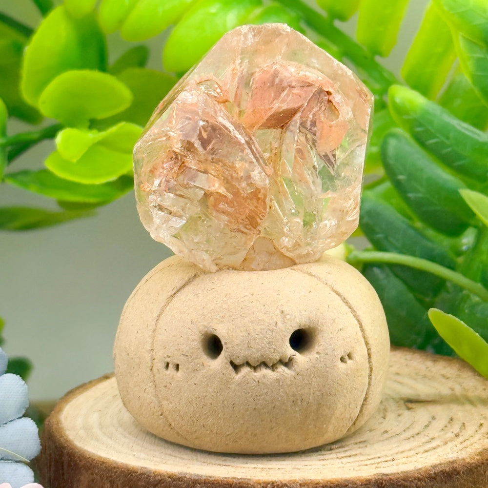 This Red Skeleton Quartz Pumpkin Crystal Pet is a handcrafted art piece lovingly sculpted from clay by the designer. Blending natural crystal energy with the festive charm of Halloween, it captures both warmth and playfulness in its design. The pumpkin-shaped little figure, with its plump form and mischievous smile, brings a cozy and cheerful touch to the autumn season.
