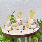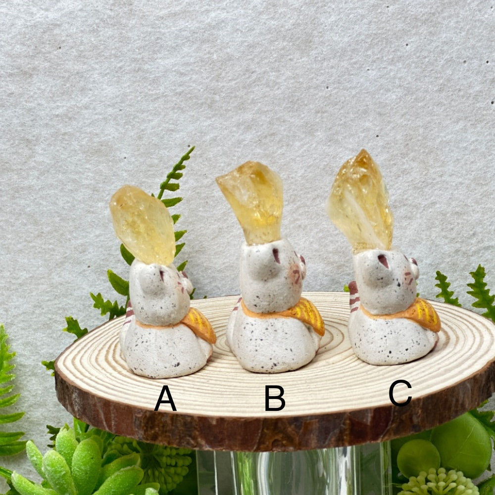This Citrine Cat Crystal Pet is delicately handcrafted from clay by the designer, with every detail infused with warmth and creativity. The playful cat figure wears a cheerful yellow scarf, topped with a natural citrine crystal that glows with bright golden light, as if capturing the radiance of the sun and its vibrant energy.