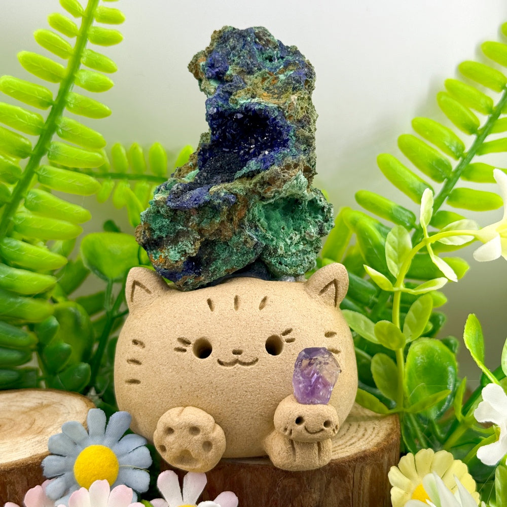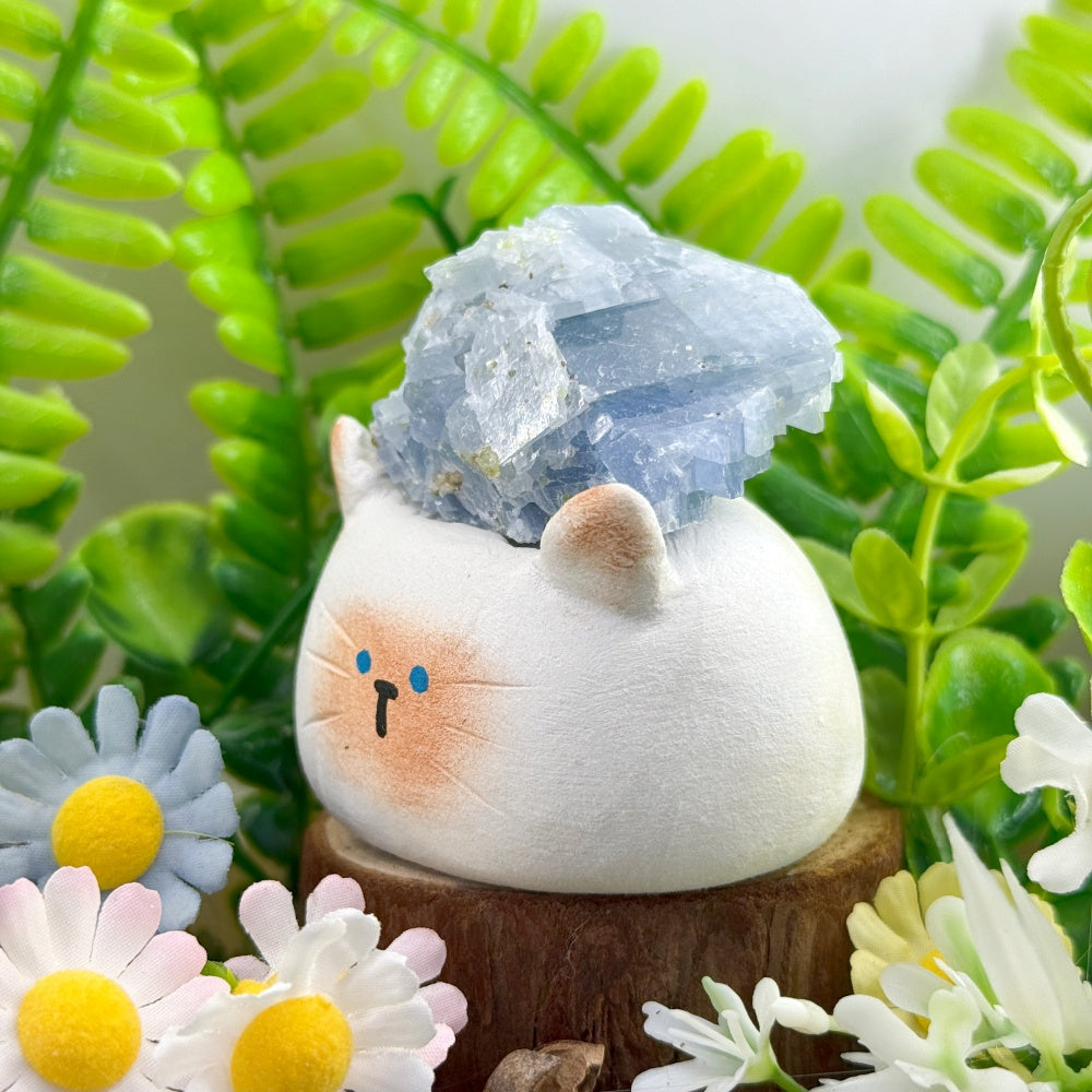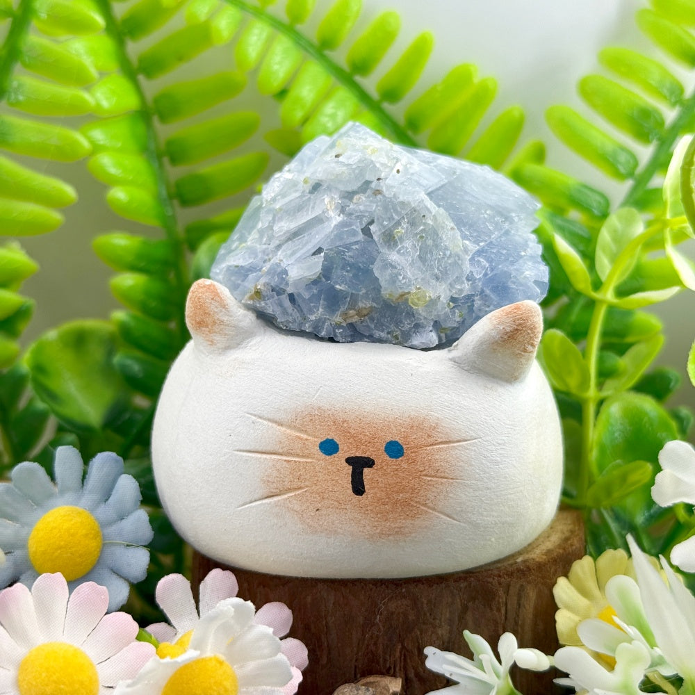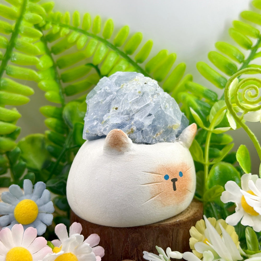 Handmade Healing Companion Blue Kyanite Cat Crystal Pet