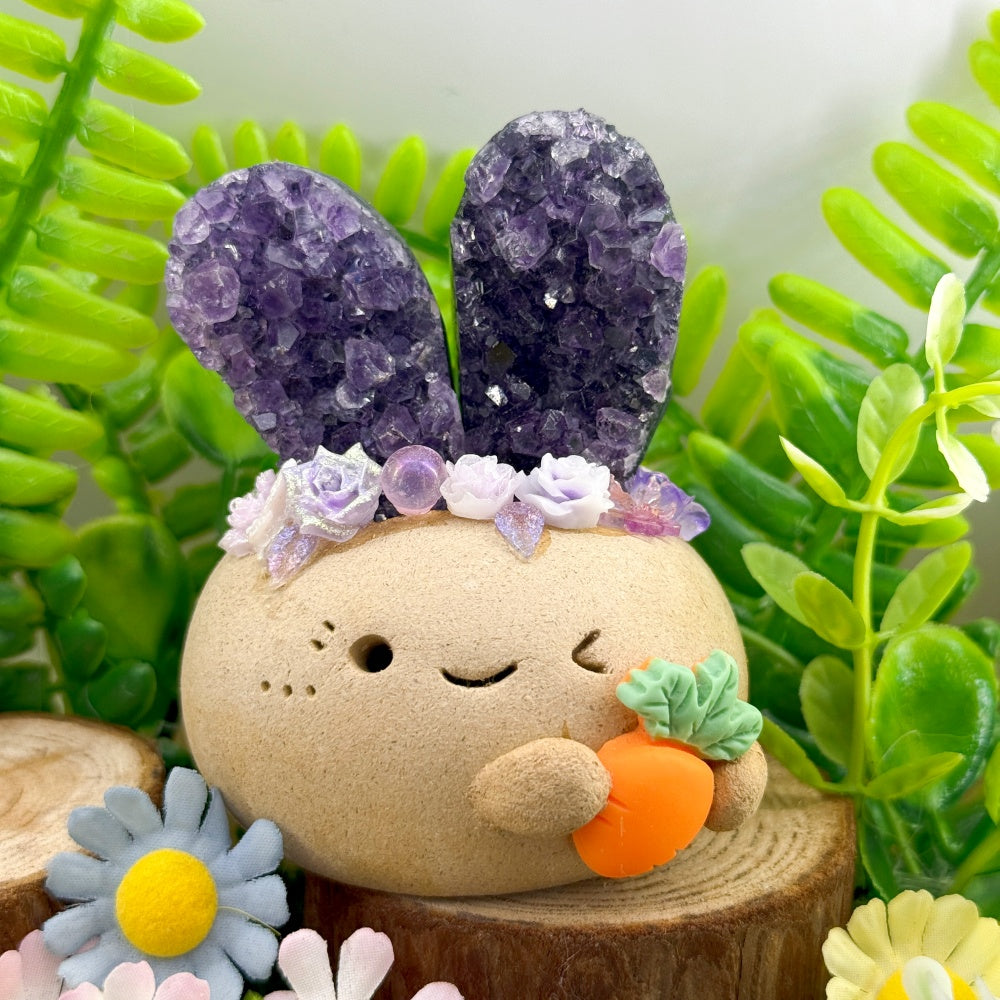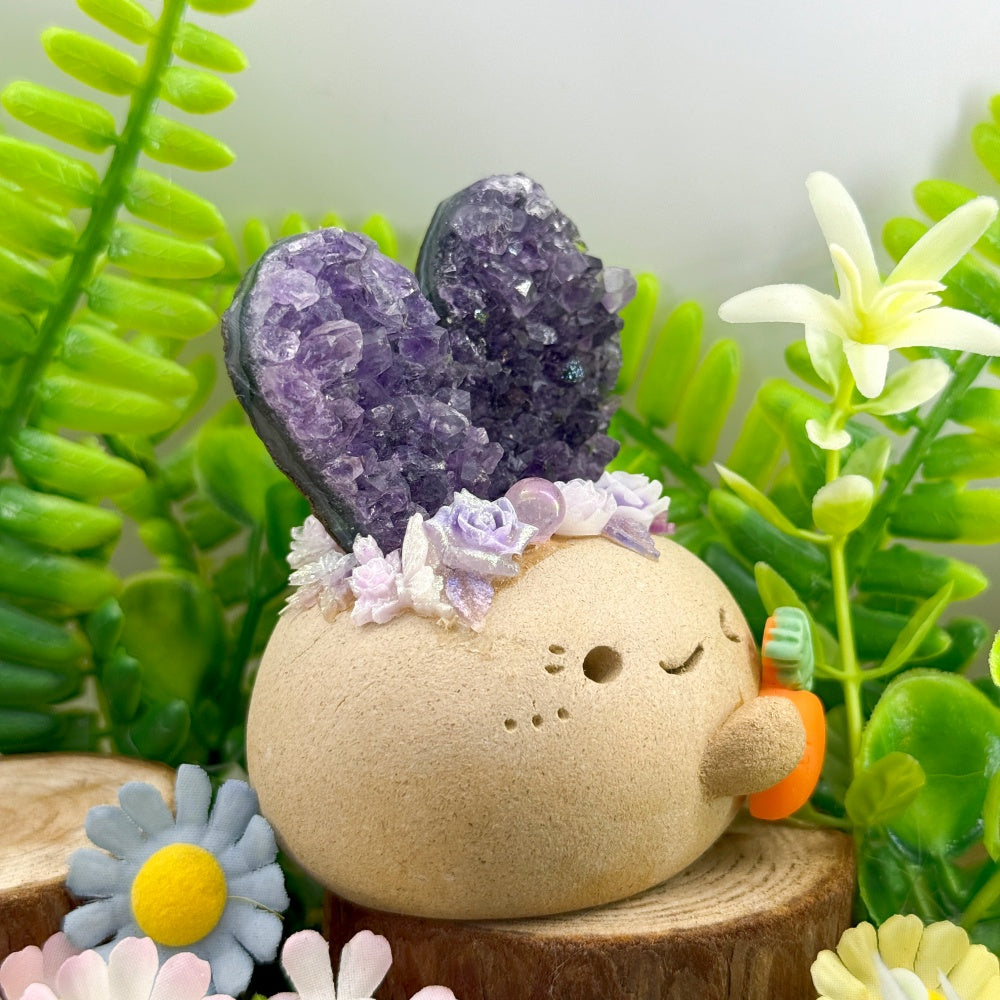 Playful and Adorable Amethyst Bunny-Ear Crystal Pet