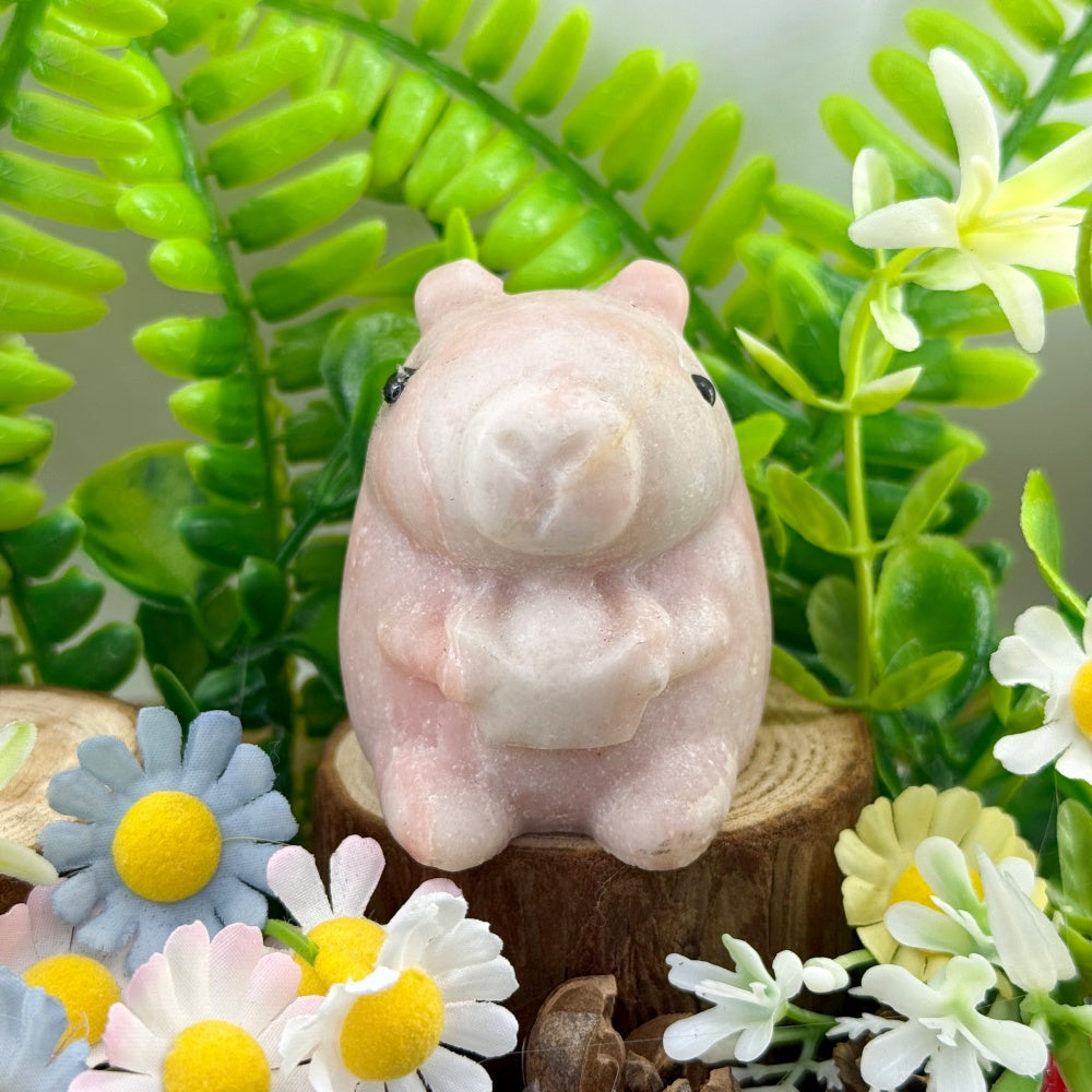 Healing Companion Pink Opal Capybara Figurine