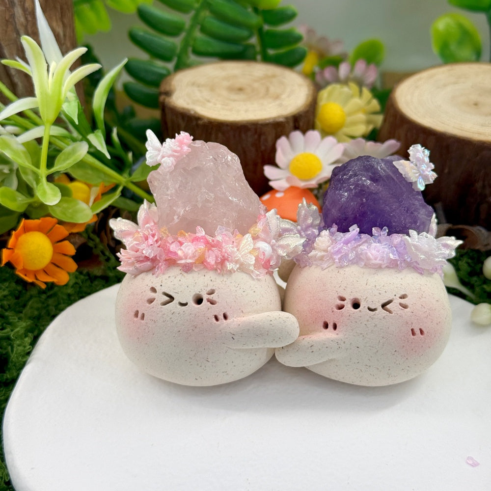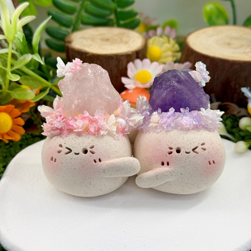 Soft & Cuddly Rose Quartz & Amethyst Crystal Pet