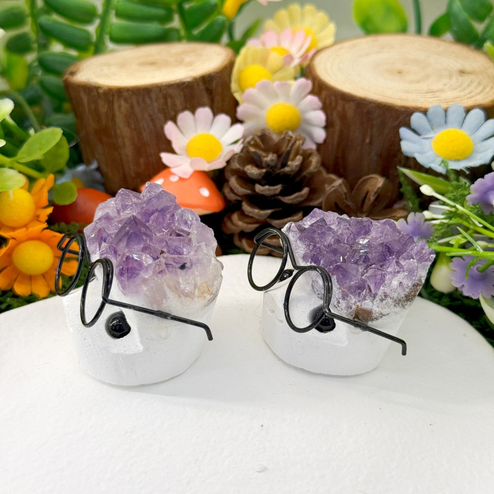 This Amethyst Glasses Kid Crystal Pet is a soothing desktop figurine that blends handcrafted artistry with the gentle presence of natural crystals.