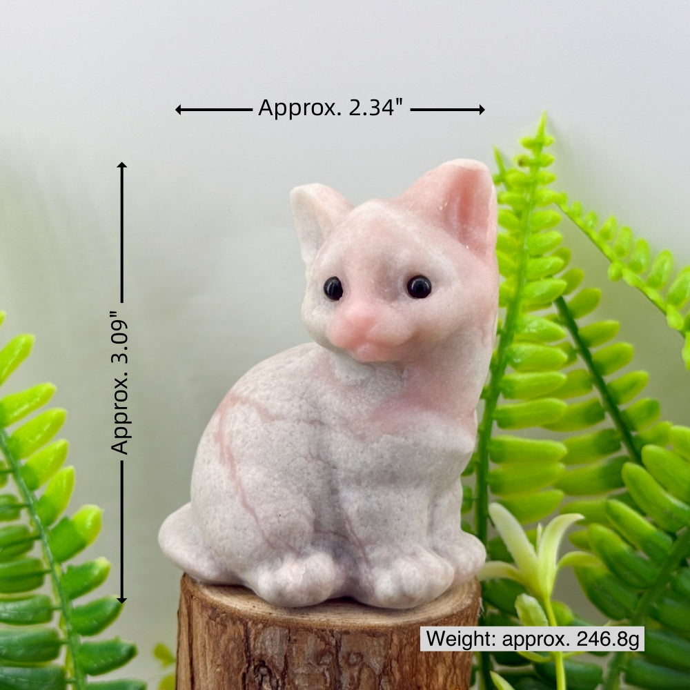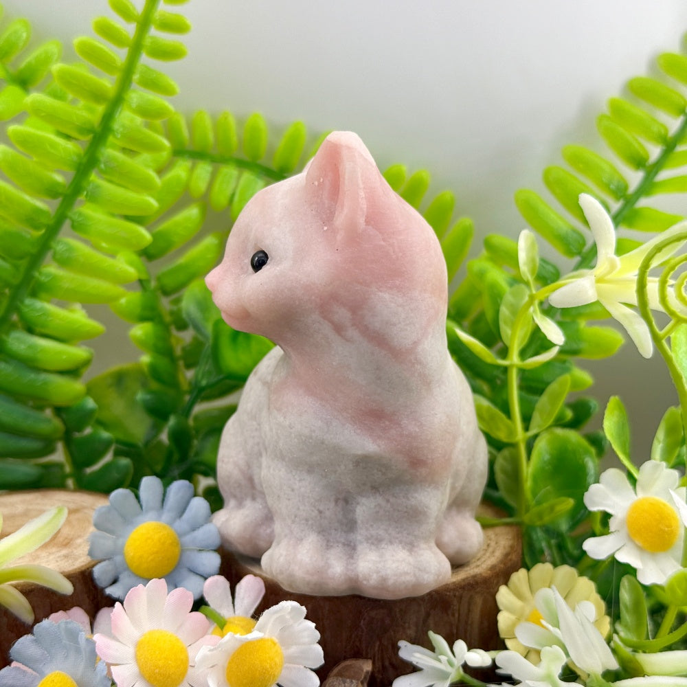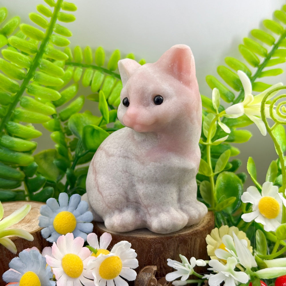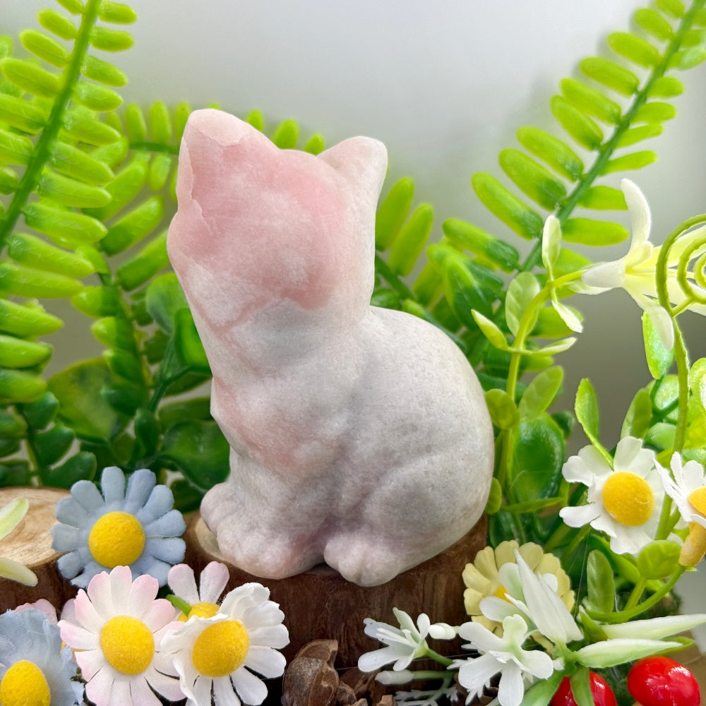 Adorable Pink Opal Cat Figurine of Warmth & Protection