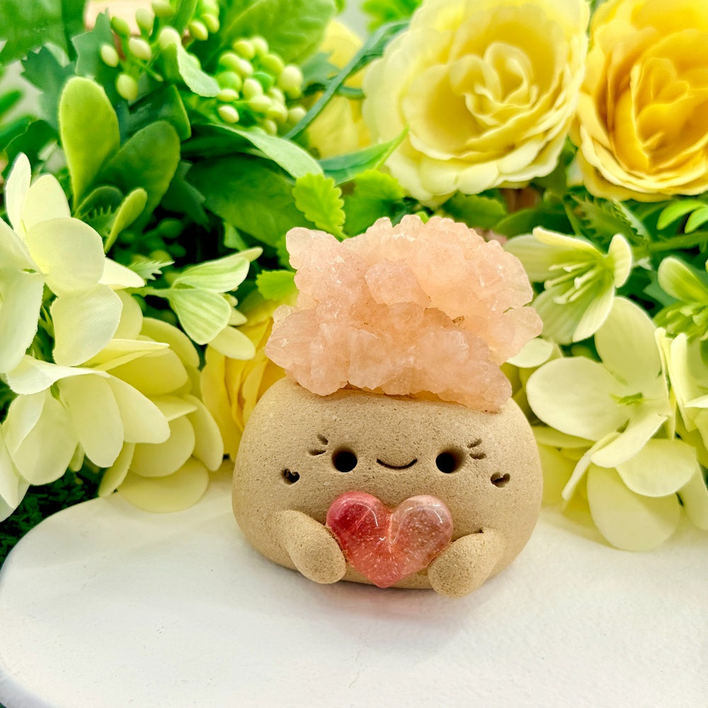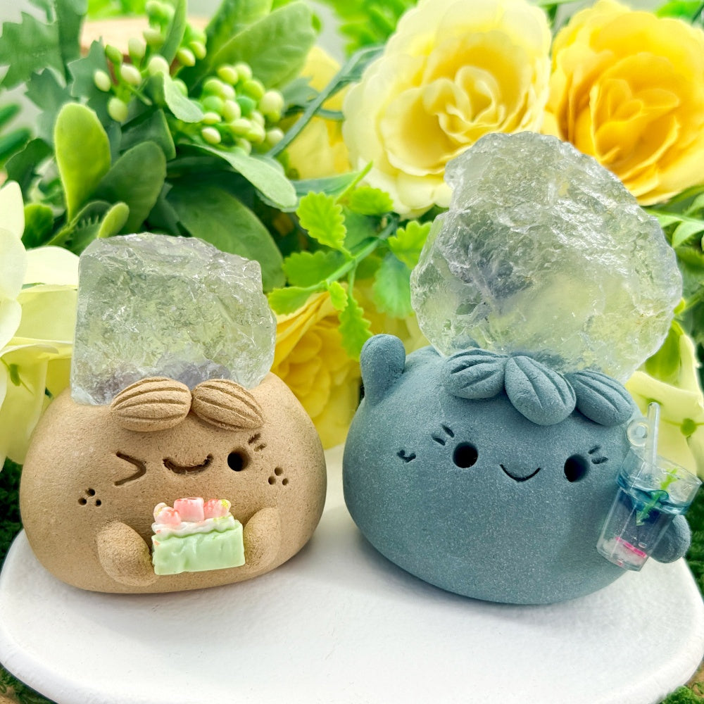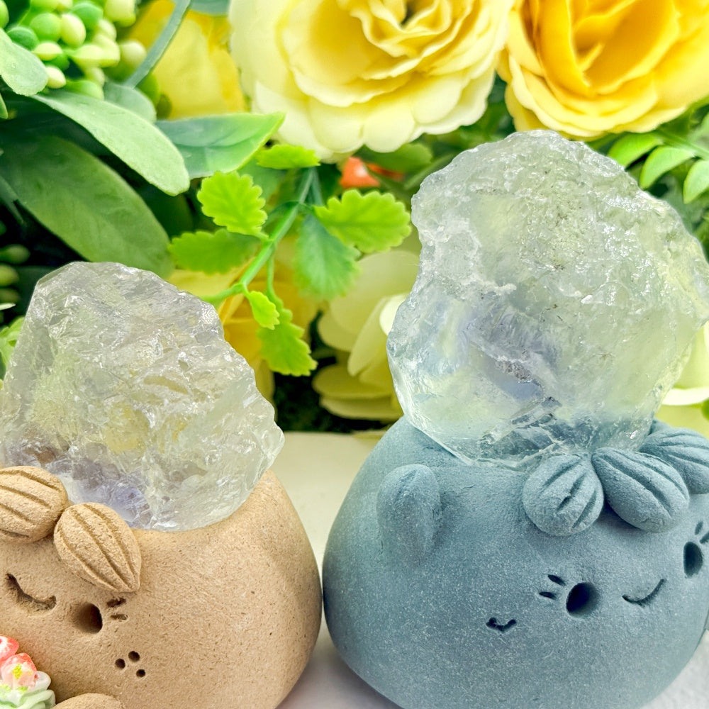 6. For daily cleaning, use a soft brush to gently remove dust, or wipe the crystal stone with a dry or slightly damp cloth. Be careful not to get the clay base or surface wet.